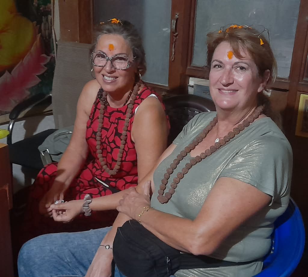 Ravies, elles ont généreusement rémunéré l’astrologue. Mais en quittant le bureau, les chaussures de Chantal avaient disparu ! Malgré une recherche éclair, elles sont restées introuvables, mais une habitante a gentiment offert des sandales, sauvant la mise grâce à la patience de Chantal . À 18h30, je les ai accompagnées à leur voiture, et avec de généreux pourboires, elles sont parties pour le Bhoutan le lendemain. Guider ces femmes pétillantes fut une expérience inoubliable, et j’espère les croiser à nouveau, gardant en mémoire les moments culturels et spirituels partagés au Népal.