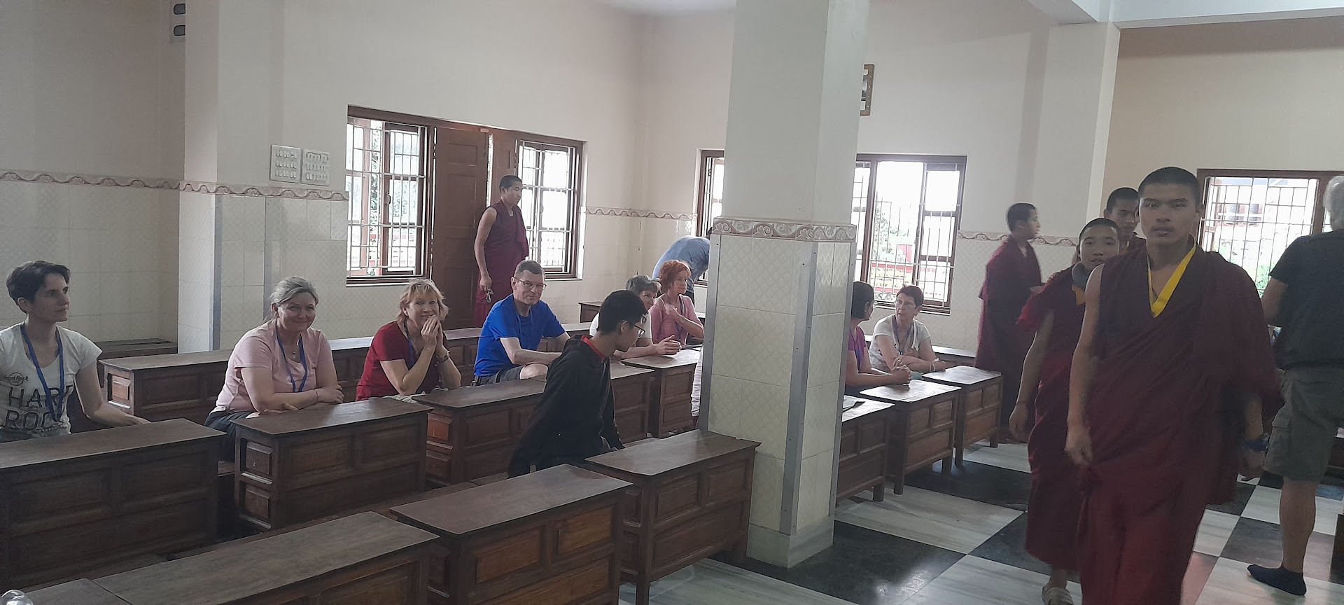 Comme toujours très serviable et à l’écoute de nos besoins, Suvhadien a consacré sa matinée de libre pour trouver et acheter des masques contre la pollution pour Véronique et Michel qui souffre d’asthme. De mon côté, je me suis baladée au bord du lac, c’est tellement beau ! Heureusement, l’après-midi s’est très bien passé avec la visite du camp de réfugiés tibétains avec à nouveau une participation à la prière des moines.
