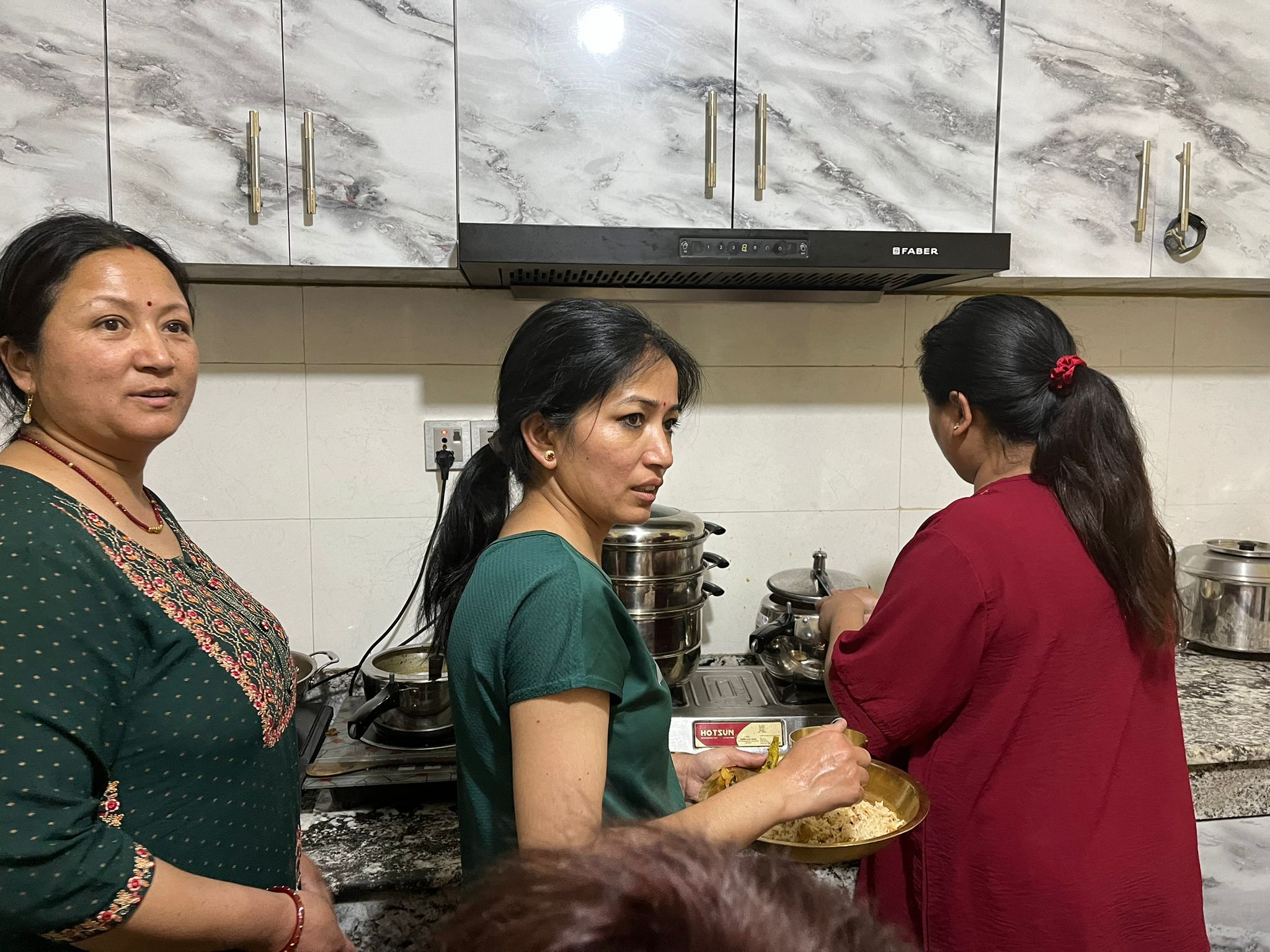 Cette nouvelle journée a été exceptionnelle grâce au très chaleureux accueil de la famille de Suvhadien qui ont beaucoup travaillé pour organiser le cours de confection de “momos”, tellement bons ! et pour le très sympathique repas du soir. Beaucoup de rires et d’échanges, merci infiniment.