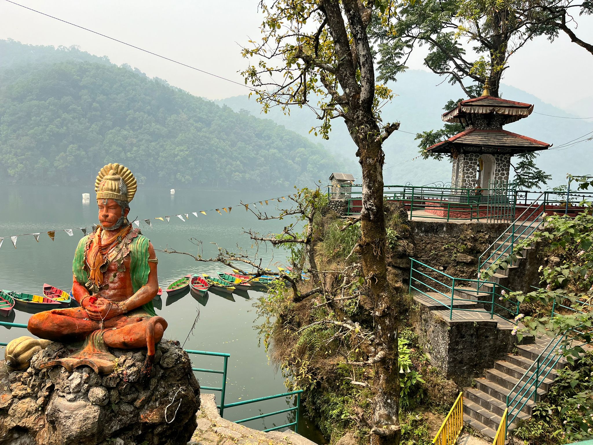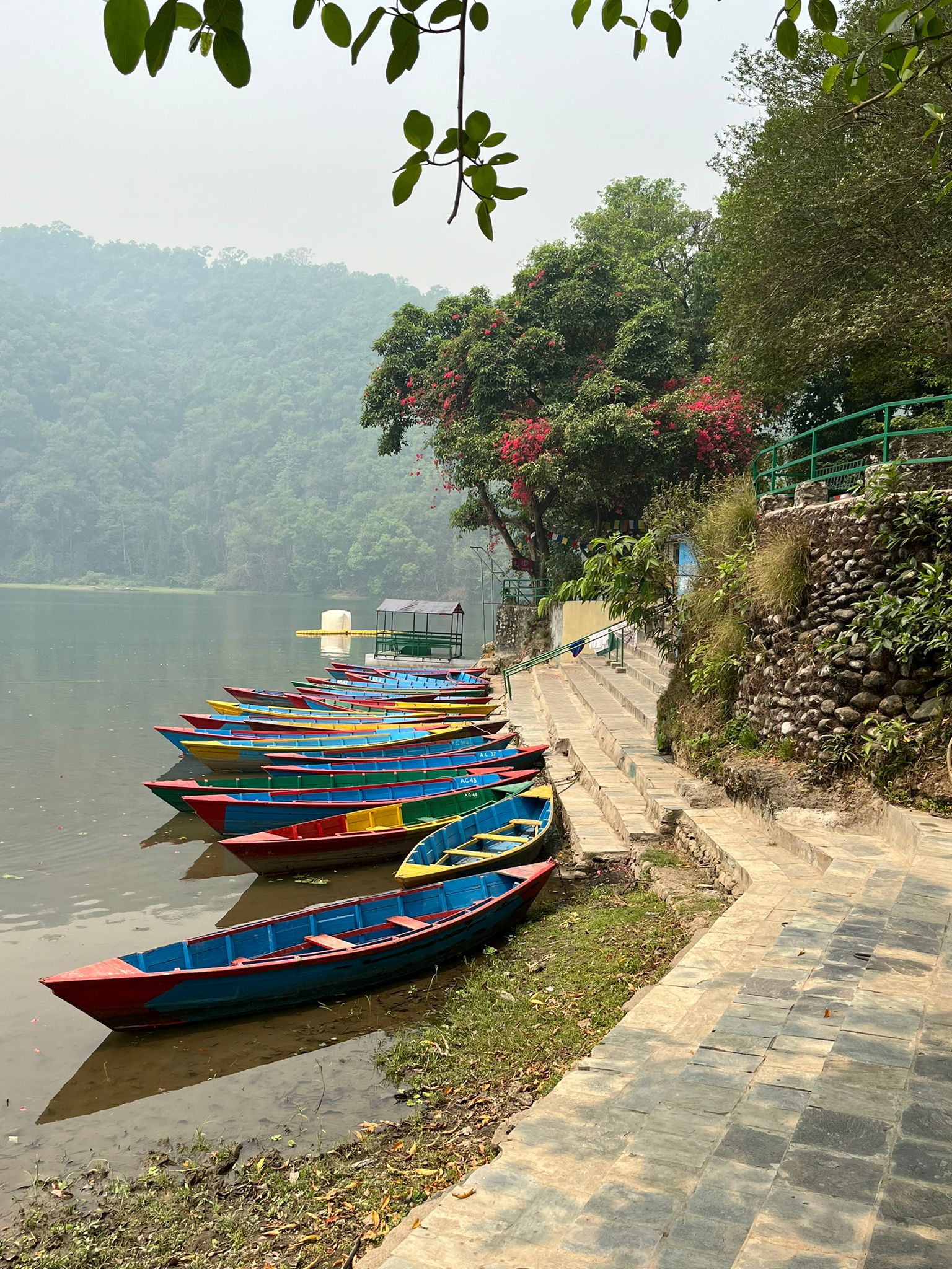 Pokhara est une ville magnifique, avec son lac et la vue sur les sommets enneigés. Sauf que là… En raison de la pollution et des feux de forêts, il n’y avait absolument aucune visibilité. Nous étions tellement déçus ! Fort heureusement, tout le monde a bien compris que ce n’est pas de notre faute et qu’il vaut mieux faire “contre mauvaise fortune, bon coeur”.
